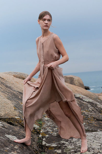 Eleganza naturale e sostenibilità si incontrano in capi essenziali e raffinati. Tessuti biologici e lavorazioni artigianali valorizzano la tradizione portoghese, dando vita a una moda consapevole che celebra la semplicità e la bellezza autentica.
